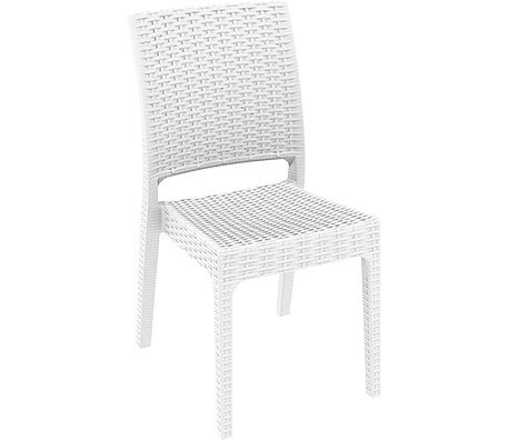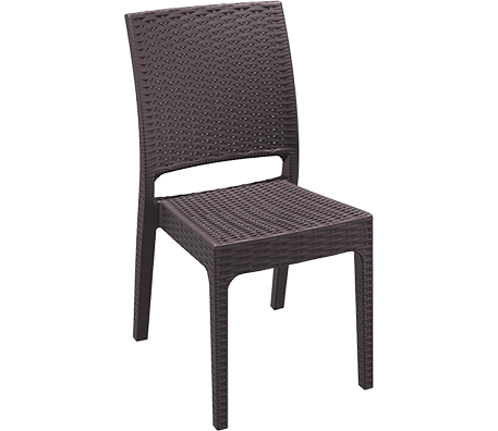 Available in the colours anthracite and chocolate and white. The Siesta Florida Chair is an injection moulded resin chair, the non-metalic frame will never unravel, rust or decay, with rattan look seat and back. Reinforced with glass fibre to strengthen the legs and boost the weight capacity. The Monico Chair is stackable, designed for outdoor use, UV stable and weather proof, it will not fade or go brittle in Australia’s harsh outdoor conditions. Strong yet lightweight, this chair will add class to your venue. It’s sleek profile is pleasant to the eye so this chair is as charming as it is functional. Very easy to clean, just hose it down.